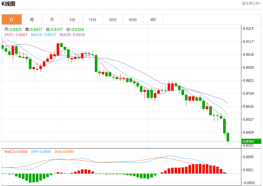 周四纽盘,瑞郎兑美元交投于0.8365,跌幅为0.72%。 瑞郎基本面分析 瑞银发表报告,相信市场对新世界(00017.HK)现金状况的担忧应该会有所缓解,因为估计其出售新创建(00659.HK)所得的180亿元收益和230亿元的手头自由现金,应足以支付2024财年的到期债券及相关资本支出和费用。