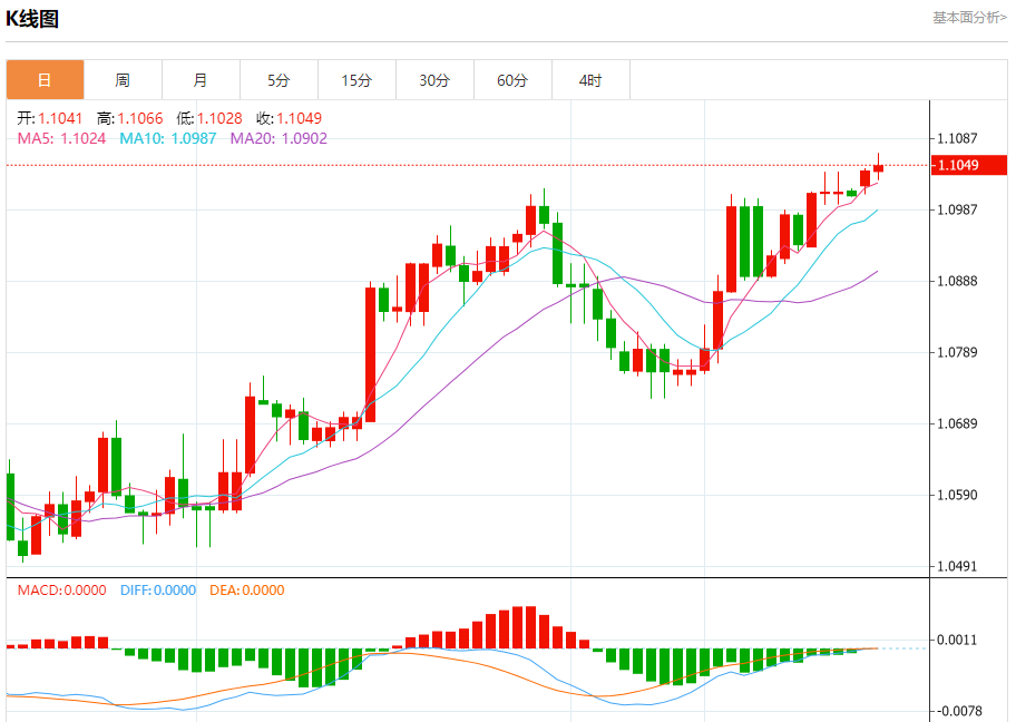 周三盘中,欧元/美元报1.1050,涨幅0.07%。 今日分析:在1.1025之上,看涨,目标价位为1.1070,然后为1.1085。 技术点评:RI技术指标向上运行。 支撑位:1.10251.10051.0990 阻力位:1.11001.10851.1070 (亚汇网编辑:冰凡)