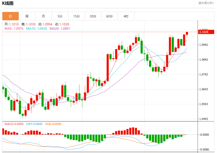 周五盘中,欧元/美元报1.1027,涨幅0.14%。 今日分析:在1.0990之上,看涨,目标价位为1.1045,然后为1.1065。 技术点评:RI技术指标向上运行。 支撑位:1.09901.09701.0950 阻力位:1.10851.10651.1045 (亚汇网编辑:冰凡)