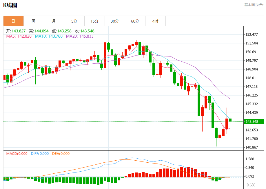 周三盘中,美元/日元报143.526,跌幅0.22%。 今日分析:在144.10之下,看跌,目标价位为143.15,然后为142.90。 技术点评:RI技术指标运行趋势复杂,倾向于下跌。 支撑位:143.15142.90142.40 阻力位:144.90144.35144.10 (亚汇网编辑:冰凡)