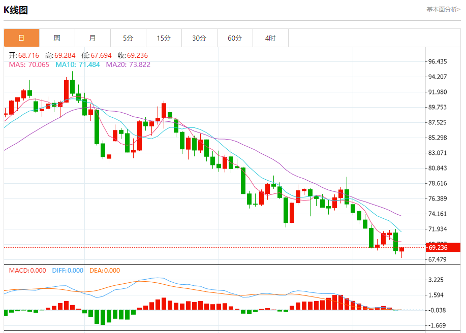 周三盘中,WTI原油报69.319,涨幅0.83%。 今日分析:在68.95之下,看跌,目标价位为67.50,然后为66.90。 技术点评:只要依旧存在68.95阻力位,价格波动存在看跌的趋势。 支撑位:67.5066.9066.30 阻力位:70.2569.6068.95 (亚汇网编辑:冰凡)