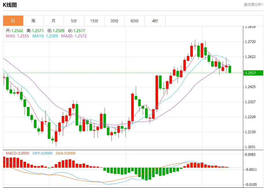 周三盘中,英镑/美元报1.2519,跌幅0.36%。 今日分析:在1.2545之下,看跌,目标价位为1.2500,然后为1.2485。 技术点评:只要1.2545阻力位不被突破,向下跌破1.2500位置的风险很高。 支撑位:1.25001.24851.2450 阻力位:1.25901.25701.2545 (亚