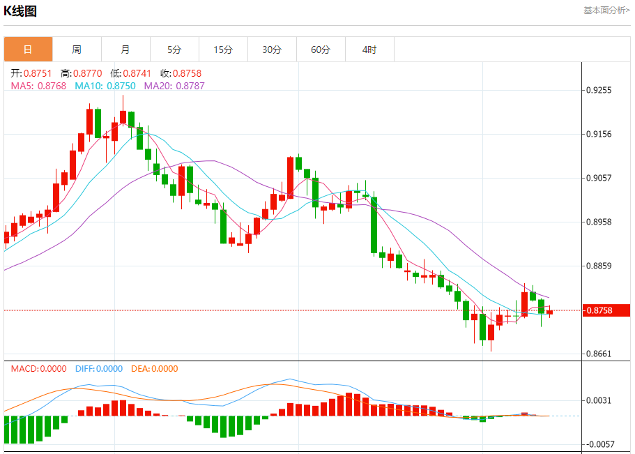 周三纽盘,瑞郎兑美元交投于0.8760,涨幅为0.06%。 瑞郎基本面分析 根据彭博社对经济学家的调查,预计瑞士央行将于明年9月首次降息,随后在12月和次年的3月再次降息,最终使政策利率从目前的1.75%降至1.0%。 一些受访者预计瑞士央行的行动可能会更快,瑞银集团预计可能在6月