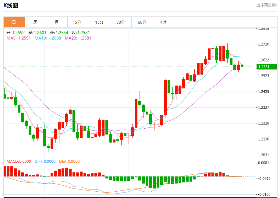 周五盘中,英镑/美元报1.2584,跌幅0.07%。 今日分析:在1.2540之上,看涨,目标价位为1.2595,然后为1.2610。 技术点评:RI技术指标运行趋势复杂,倾向于上升。 支撑位:1.25401.25201.2500 阻力位:1.26401.26101.2595 (亚汇网编辑:冰凡)