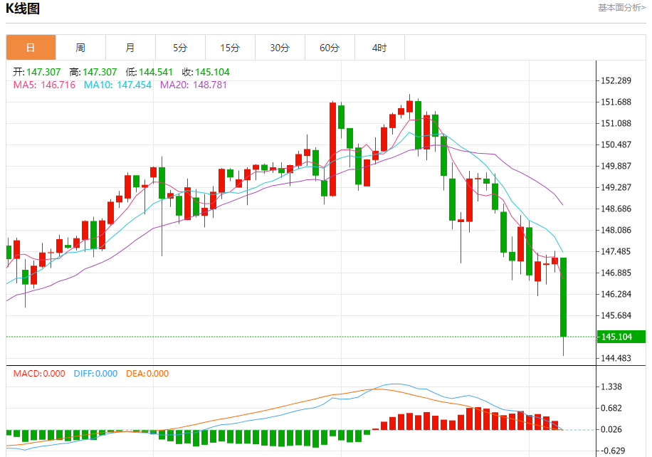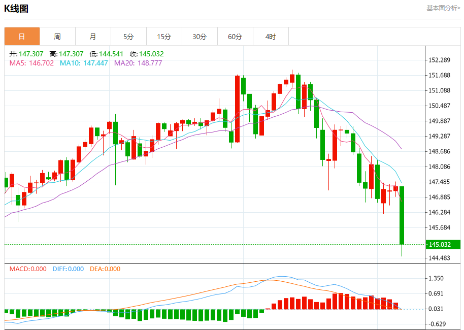 周四盘中,美元/日元报145.125,跌幅1.49%。 今日分析:在145.40之下,看跌,目标价位为144.50,然后为144.00。 技术点评:其即时趋势维持向下,有较强的动能。 支撑位:144.50144.00143.70 阻力位:146.50146.20145.40 (亚汇网编辑:冰凡)