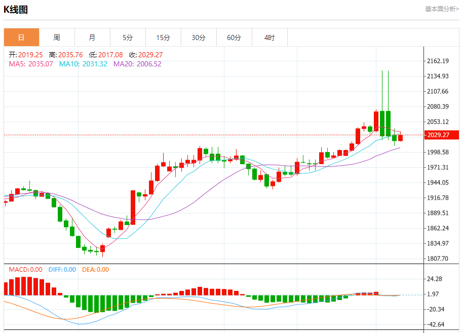 周三盘中,现货黄金报2029.33,涨幅0.50%。 今日分析:在2035.00之下,看跌,目标价位为2010.00,然后为2000.00。 技术点评:RI技术指标看跌,有进一步下降空间。 支撑位:2063.002050.002035.00 阻力位:2010.002000.001990.00 (亚汇网编辑:冰