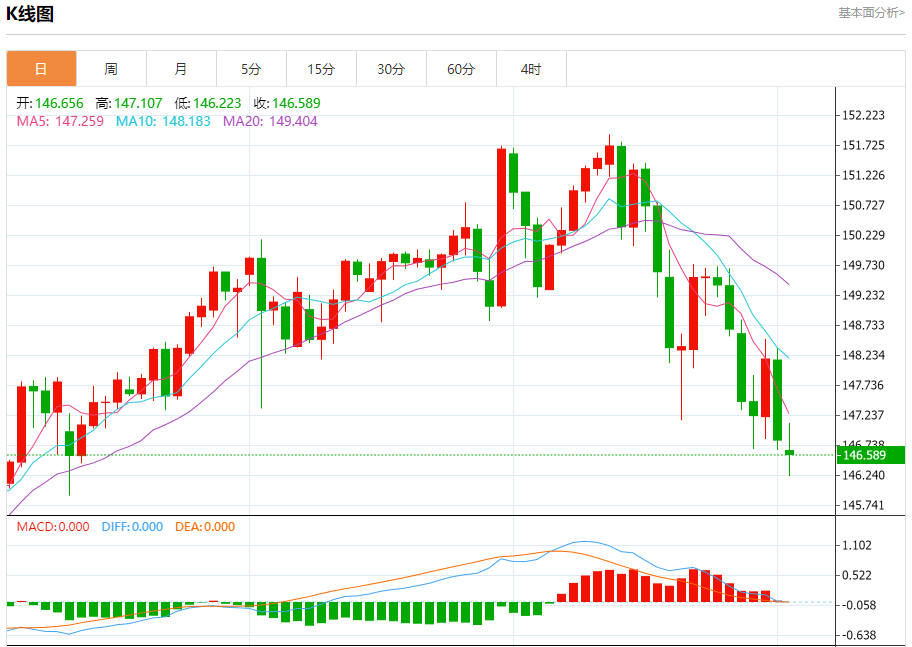 周一盘中,美元/日元报146.598,跌幅0.16%。 今日分析:在147.50之下,看跌,目标价位为146.20,然后为145.80。 技术点评:只要依旧存在147.50阻力位,价格波动存在看跌的趋势。 支撑位:146.20145.80145.60 阻力位:148.35147.90147.50 (亚汇网