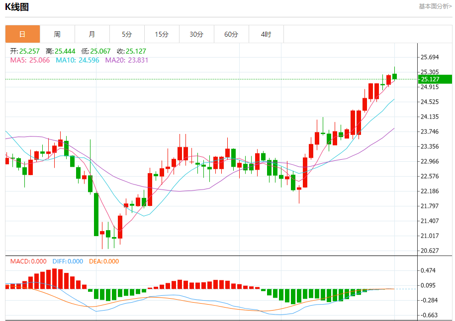 周五盘中,现货白银报25.117,跌幅0.51%。 今日分析:在25.30之下,看跌,目标价位为24.95,然后为24.83。 技术点评:RI技术指标看跌,有进一步下降空间。 支撑位:24.9524.8324.73 阻力位:25.4525.3925.30 (亚汇网编辑:冰凡)