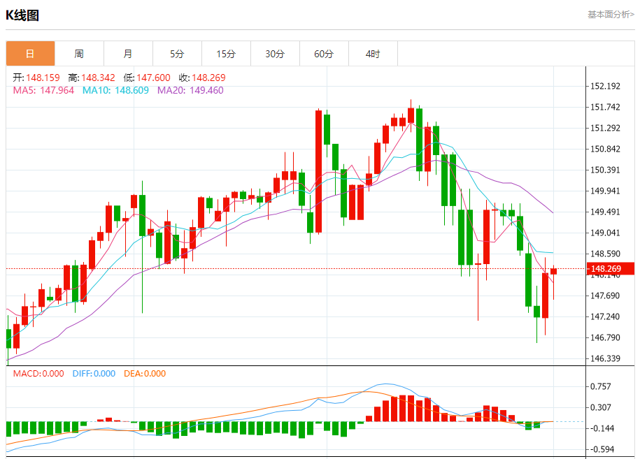周五盘中,美元/日元报148.278,涨幅0.06%。 今日分析:在147.65之上,看涨,目标价位为148.40,然后为148.90。 技术点评:RI技术指标看涨,有进一步向上趋势。 支撑位:147.65147.20146.85 阻力位:149.30148.90148.40 (亚汇网编辑:冰凡)