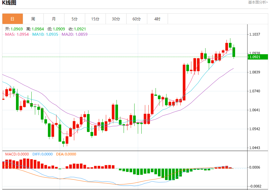 今日周四,截止目前欧元兑美元报1.0917,下跌0.47%。 欧元基本面行情分析 法国国家统计局公布的数据显示,在截至9月份的三个月里,法国GD下降了0.1%,低于最初公布的增幅。 法国第三季度经济意外萎缩,11月份通胀放缓幅度超出预期,这促使投资者加大了对欧洲央行将在春季降