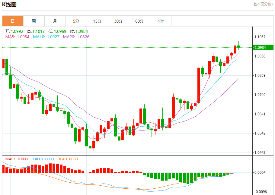 周三盘中,欧元/美元报1.0984,跌幅0.08%。 今日分析:在1.0995之下,看跌,目标价位为1.0965,然后为1.0950。 技术点评:RI技术指标向下运行。 支撑位:1.09651.09501.0930 阻力位:1.10401.10201.0995 (亚汇网编辑:冰凡)