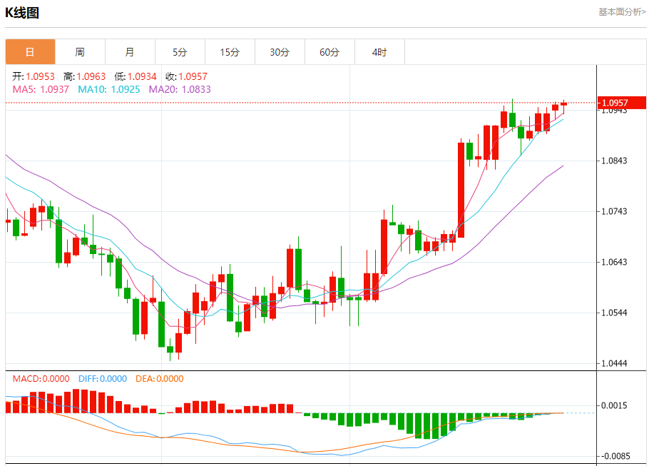 周二盘中,欧元/美元报1.0957,涨幅0.03%。 今日分析:在1.0960之下,看跌,目标价位为1.0930,然后为1.0920。 技术点评:RI技术指标缺乏上升动能 支撑位:1.09301.09201.0905 阻力位:1.09901.09701.0960 (亚汇网编辑:冰凡)