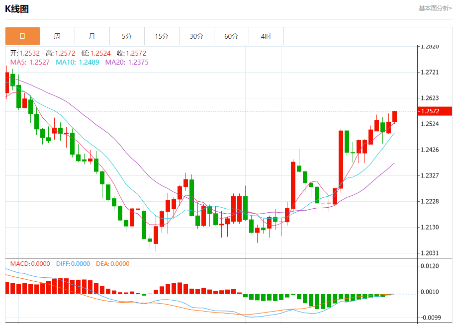 周五盘中,英镑/美元报1.2575,涨幅0.34%。 今日分析:在1.2515之上,看涨,目标价位为1.2580,然后为1.2610。 技术点评:RI技术指标向上运行。 支撑位:1.25151.25001.2485 阻力位:1.26401.26101.2580 (亚汇网编辑:冰凡)