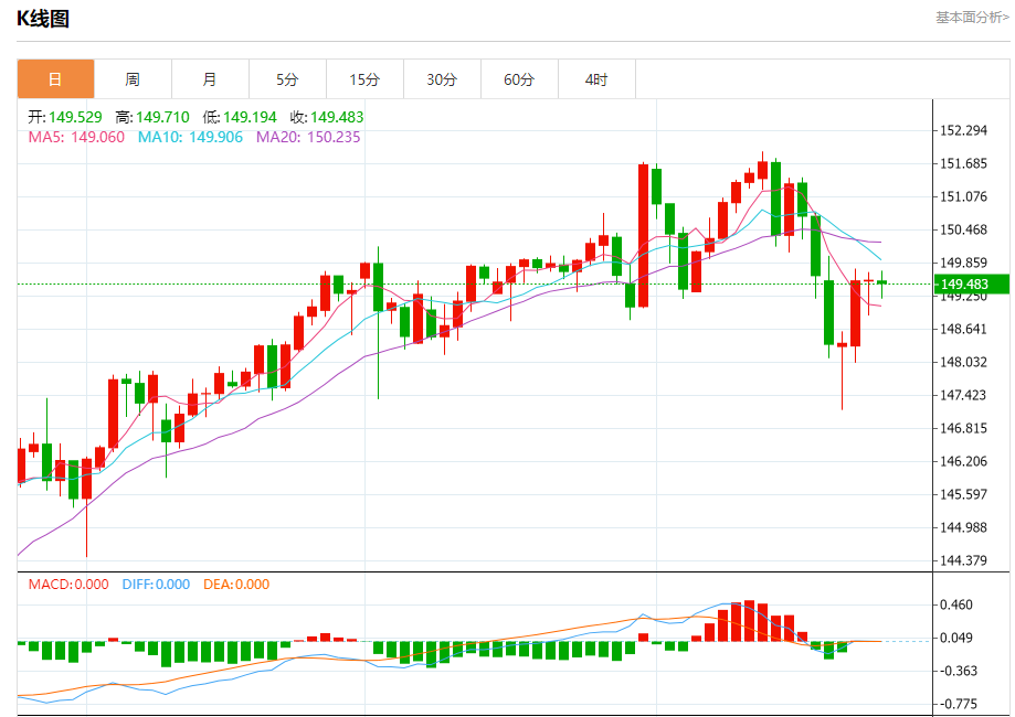 周五盘中,美元/日元报149.465,跌幅0.06%。 今日分析:在149.75之下,看跌,目标价位为149.15,然后为148.90。 技术点评:RI技术指标缺乏上升动能 支撑位:149.15148.90148.60 阻力位:150.20150.00149.75 (亚汇网编辑:冰凡)