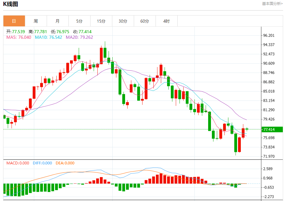 周二盘中,WTI原油报77.389,跌幅0.25%。 今日分析:在77.90之下,看跌,目标价位为76.80,然后为76.30。 技术点评:只要依旧存在77.90阻力位,价格波动存在看跌的趋势。 支撑位:76.8076.3075.40 阻力位:79.0078.4577.90 (亚汇网编辑:冰凡)