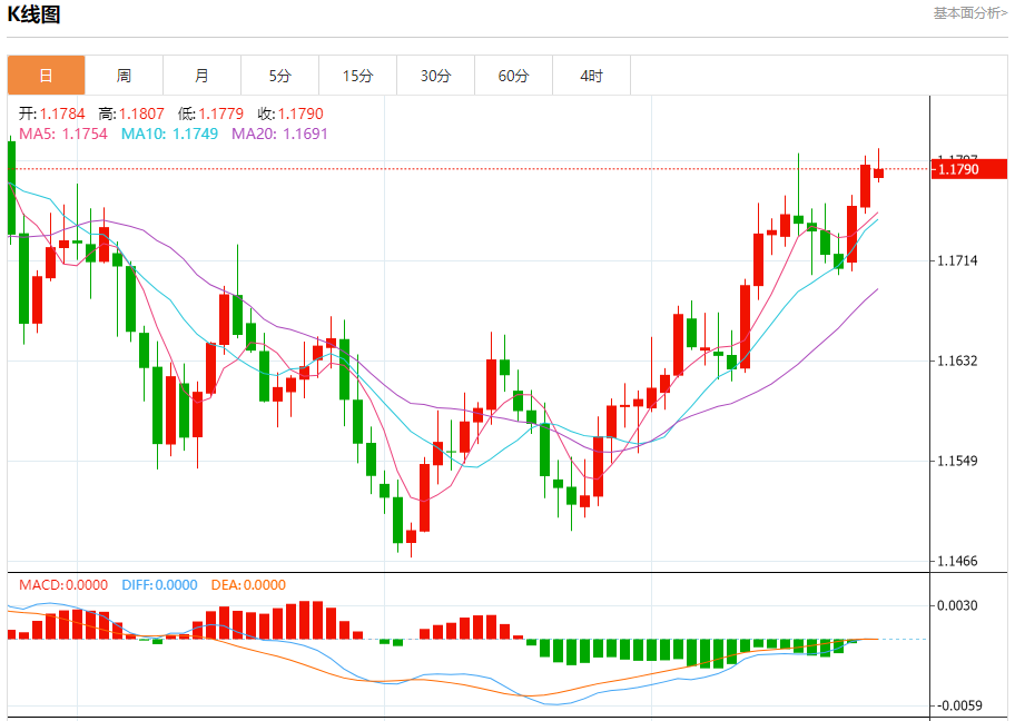 周三晚间,美元指数现报97.880,跌幅0.03%,现对美元兑欧元、英镑、日元主要货币对分析表述如下: 欧元/美元 汇价高见1.1807,低见1.1779。上一交易日,汇价收于1.1794。 基本面:当前欧元汇率受到两方面因素的牵引。一方面,欧洲央行政策制定者的言论为市场提供了短期安抚。