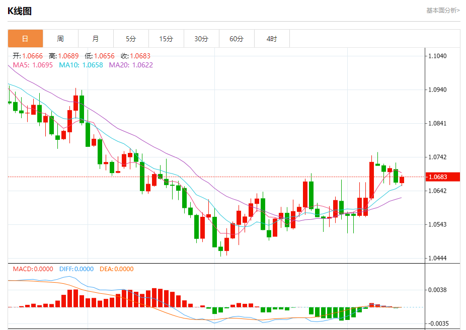 周五晚间,美元指数现报105.841,跌幅0.06%,现对美元兑欧元、英镑、日元主要货币对分析表述如下: 欧元/美元 汇价高见1.0689,低见1.0656。上一交易日,汇价收于1.0668。 日内建议:可以在1.0710---1.0640的区间上限卖出,有效破位40个点止损,目标在区间的下限。