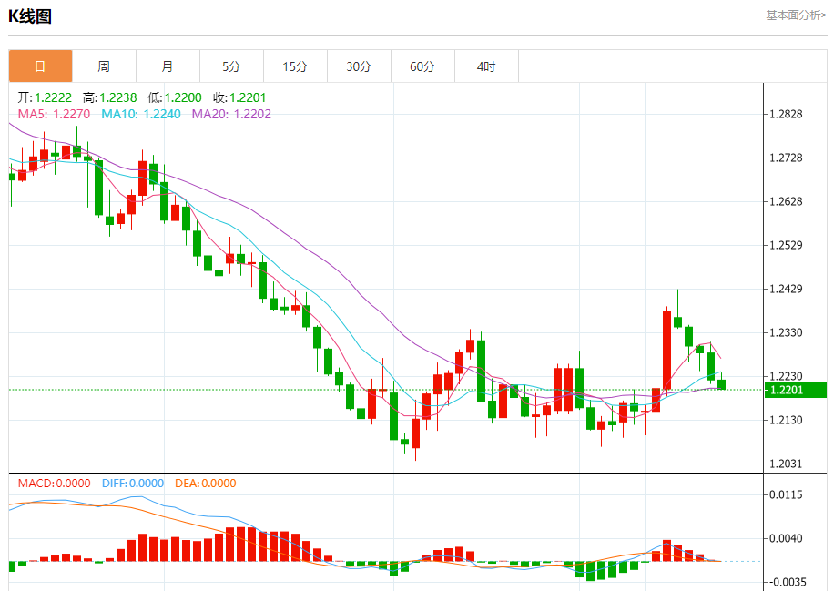 周五盘中,英镑/美元报1.2220,跌幅0.03%。 今日分析:在1.2235之下,看跌,目标价位为1.2170,然后为1.2150。 技术点评:RI技术指标向下运行。 支撑位:1.21701.21501.2130 阻力位:1.22701.22501.2235 (亚汇网编辑:冰凡)