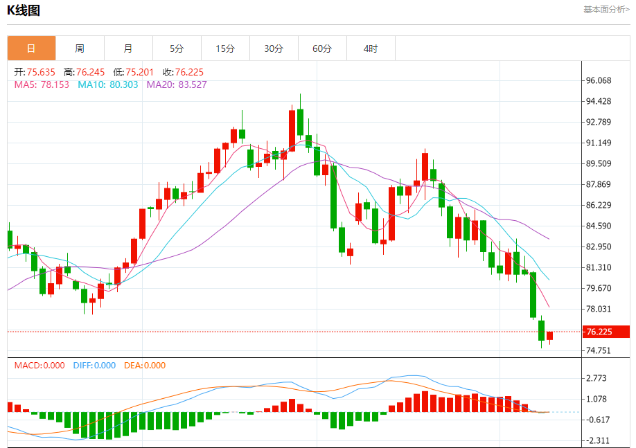 周四盘中,WTI原油报76.245,涨幅0.89%。 今日分析:在74.90之上,看涨,目标价位为76.90,然后为77.50。 技术点评:RI技术指标向上运行。 支撑位:74.9074.0072.80 阻力位:78.2277.5076.90 (亚汇网编辑:冰凡)