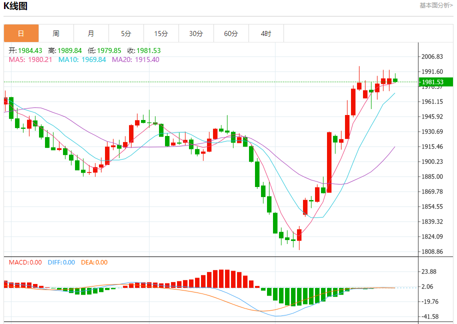 周五盘中,现货黄金报1984.21,跌幅0.02%。 今日分析:在1977.00之上,看涨,目标价位为1993.00,然后为2000.00。 技术点评:RI技术指标缺乏下降动能 支撑位:1977.001971.001963.00 阻力位:2007.002000.001993.00 (亚汇网编辑:冰凡)