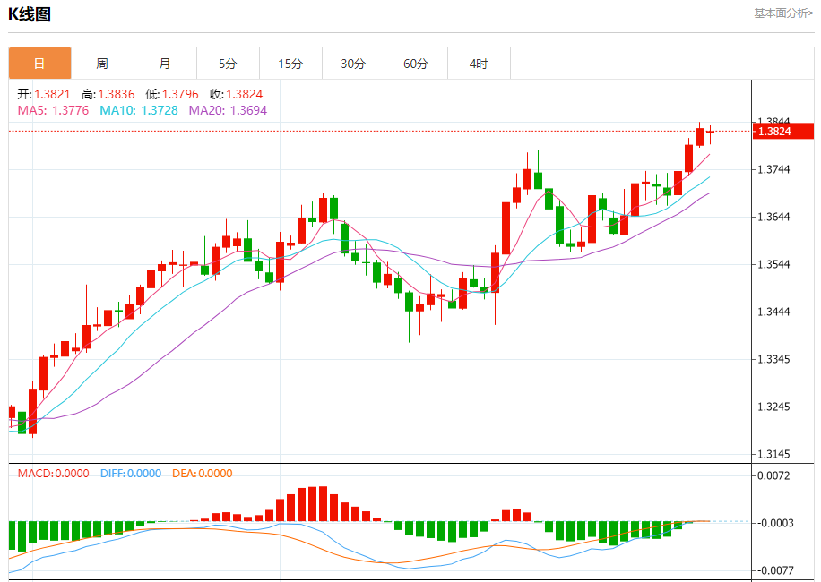 今日周五,澳元兑美元报0.6347,涨幅0.40%;美元兑加元报1.3825,跌幅0.05%;美元兑瑞郎报0.9014,涨幅0.28%。 澳元兑美元汇率分析 技术点评:RI技术指标运行趋势复杂,倾向于上涨。 阻力位:0.64000.63800.6355 支撑位:0.63100.62900.6270 美元