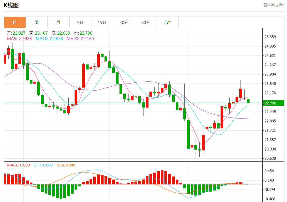 周二盘中,现货白银报22.870,跌幅0.36%。 今日分析:在22.90之下,看跌,目标价位为22.57,然后为22.35。 技术点评:跌破22.90,为空头信号,向下的目标将会是22.57。 支撑位:22.5722.3522.05 阻力位:23.3323.1822.90 (亚汇网编辑:冰凡)