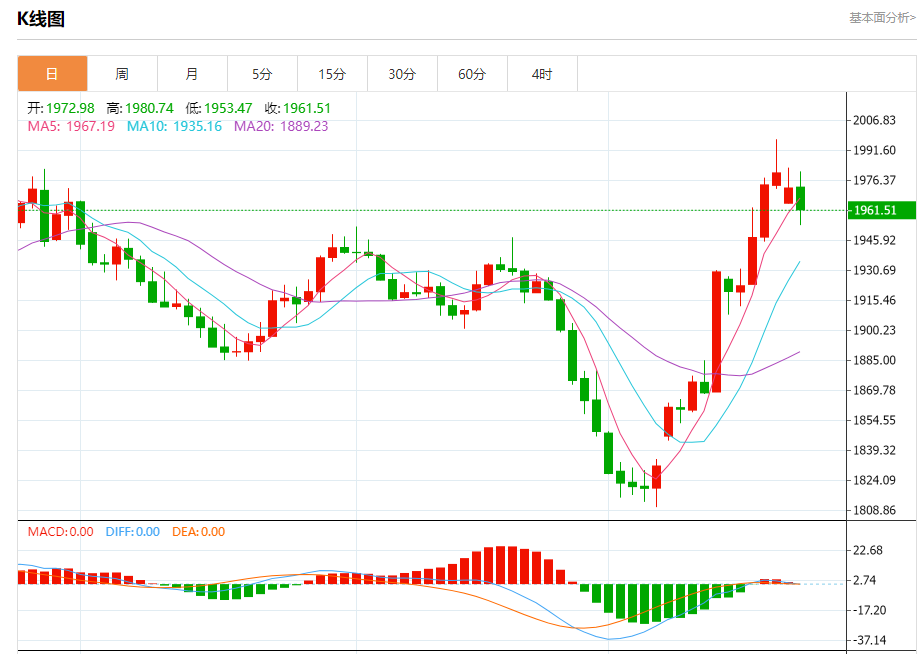 周二盘中,现货黄金报1965.92,跌幅0.34%。 今日分析:在1970.00之下,看跌,目标价位为1945.00,然后为1935.00。 技术点评:跌破1970.00,为空头信号,向下的目标将会是1945.00。 支撑位:1945.001935.00.00 阻力位:1990.001983.001970.00 (亚