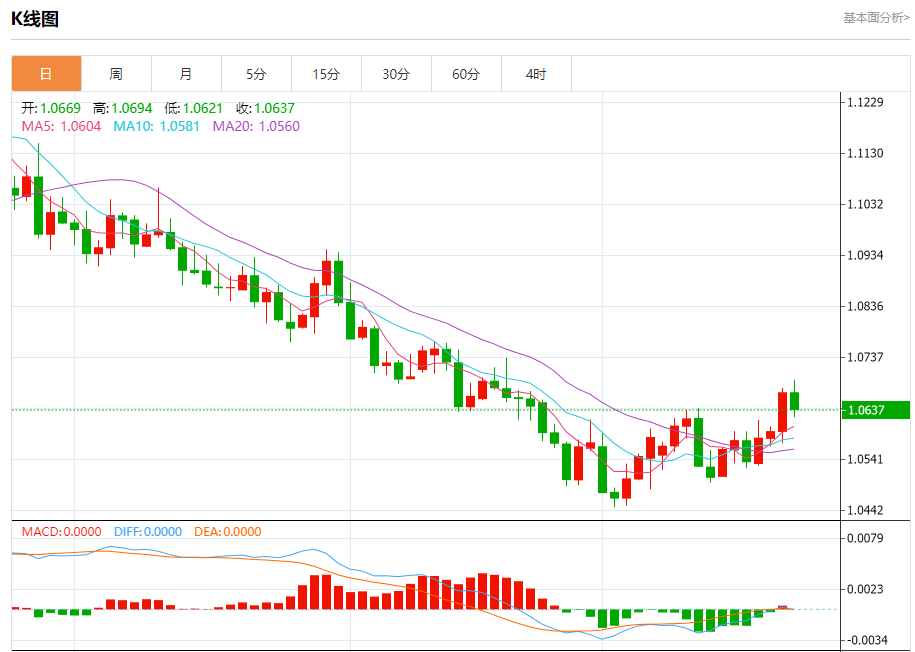 周二晚间,美元指数现报105.863,涨幅0.25%,现对美元兑欧元、英镑、日元主要货币对分析表述如下: 欧元/美元 汇价高见1.0694,低见1.0621。上一交易日,汇价收于1.0669。 日内建议:可以在1.0745---1.0605的区间下限买入,有效破位40个点止损,目标在区间的上限。