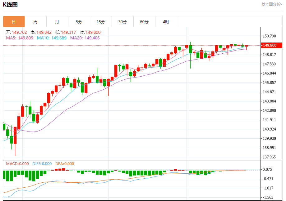 周二盘中,美元/日元报149.811,涨幅0.06%。 今日分析:在149.50之上,看涨,目标价位为150.00,然后为150.15。 技术点评:RI技术指标向上运行。 支撑位:149.50149.25149.10 阻力位:150.30150.15150.00 (亚汇网编辑:冰凡)