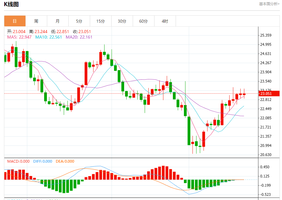周五盘中,现货白银报23.123,涨幅0.46%。 今日分析:在22.86之上,看涨,目标价位为23.31,然后为23.59。 技术点评:RI技术指标看涨,有进一步上升空间。 支撑位:22.8622.6422.45 阻力位:23.7823.5923.31 (亚汇网编辑:冰凡)