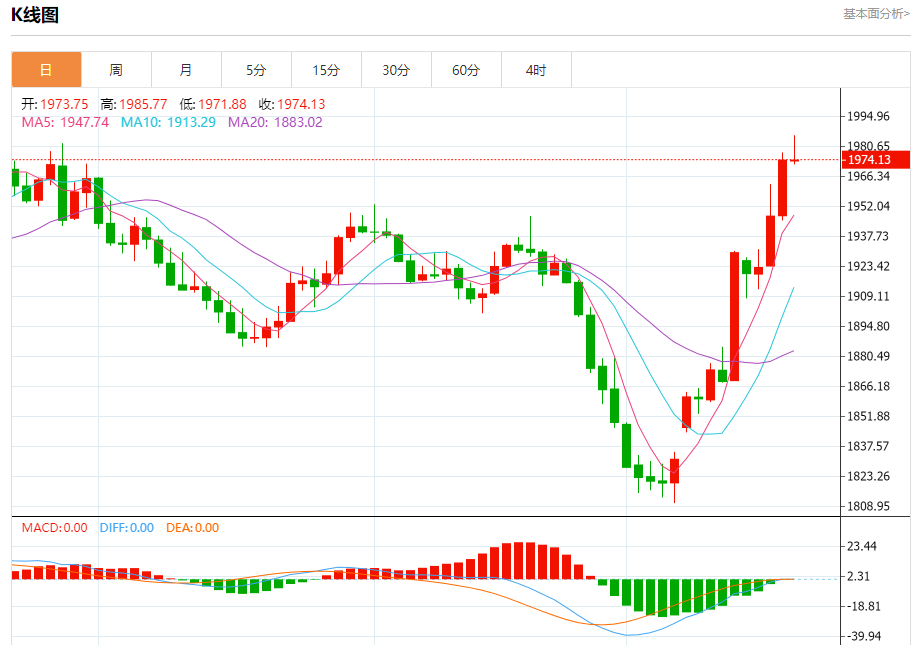 周五盘中,现货黄金报1974.40,涨幅0.01%。 今日分析:在1971.00之上,看涨,目标价位为1990.00,然后为2000.00。 技术点评:在1971.00之上,为多头信号,向上的目标位为1990.00。 支撑位:1971.001962.001952.00 阻力位:2010.002000.001990.00