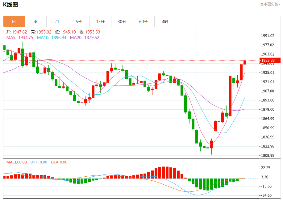 周四盘中,现货黄金报1956.56,涨幅0.47%。 今日分析:在1938.00之上,看涨,目标价位为1956.00,然后为1962.00。 技术点评:RI技术指标运行趋势复杂,倾向于上升。 支撑位:1938.001931.001924.00 阻力位:1969.001962.001956.00 (亚汇网编辑: