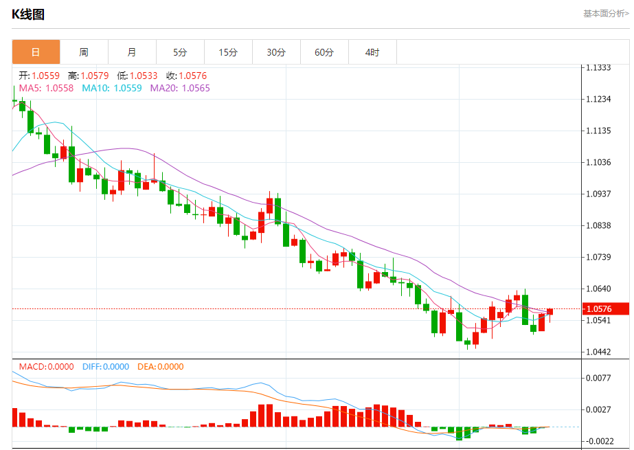 周二晚间,美元指数现报106.113,跌幅0.08%,现对美元兑欧元、英镑、日元主要货币对分析表述如下: 欧元/美元 汇价高见1.0579,低见1.0533。上一交易日,汇价收于1.0560。 基本面:在周一举行的欧元区财长闭门会议上,欧洲央行行长表示,欧洲央行正密切关注巴以冲突下油价对