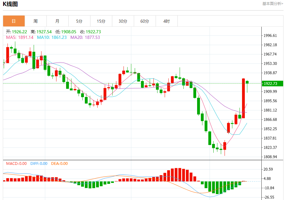 周一盘中,现货黄金报1921.76,跌幅0.43%。 今日分析:在1923.00之下,看跌,目标价位为1898.00,然后为1891.00。 技术点评:跌破1923.00,为空头信号,向下的目标将会是1898.00。 支撑位:1898.001891.001885.00 阻力位:1940.001933.001923.00