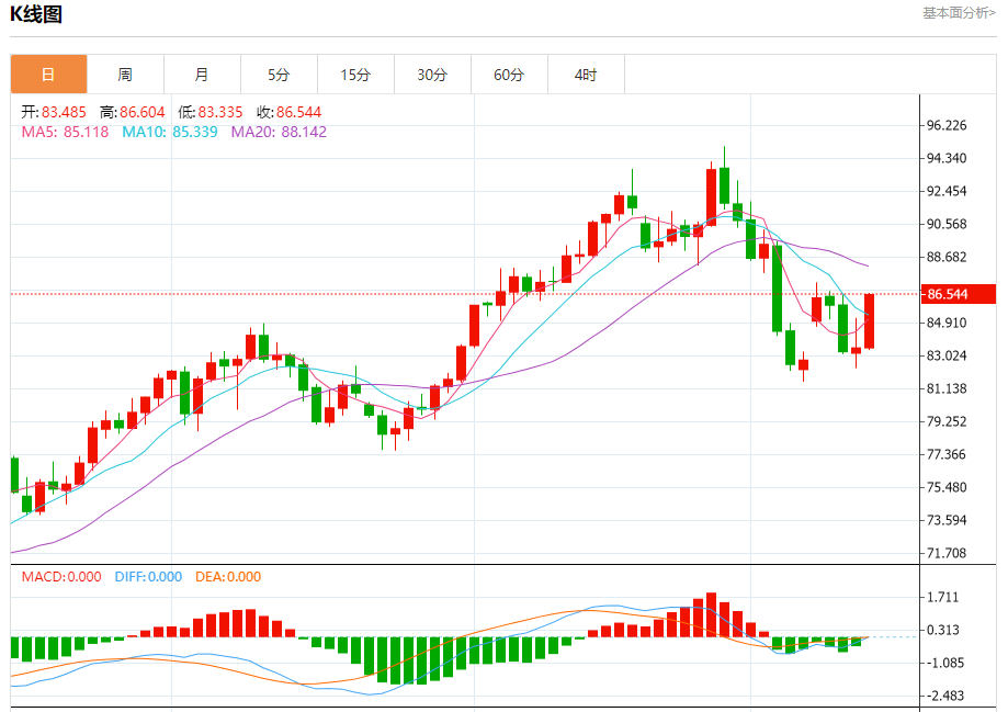 周五盘中,WTI原油报86.545,涨幅3.66%。 今日分析:在84.50之上,看涨,目标价位为86.75,然后为87.25。 技术点评:其即时趋势维持向上,有较强的动能。 支撑位:84.5083.9083.50 阻力位:88.0087.2586.75 (亚汇网编辑:冰凡)