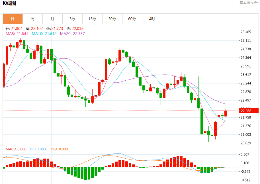 周三盘中,现货白银报21.993,涨幅0.82%。 今日分析:在21.79之上,看涨,目标价位为22.20,然后为22.39。 技术点评:其即时趋势维持向上,有较强的动能。 支撑位:21.7921.5821.48 阻力位:22.5922.3922.20 (亚汇网编辑:冰凡)