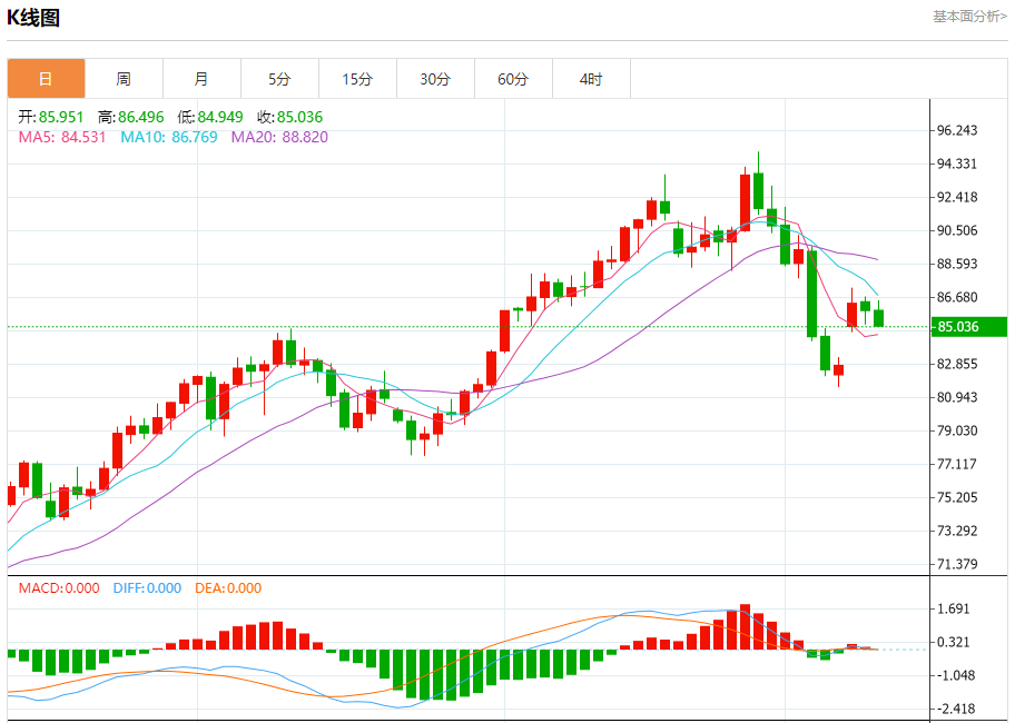 周三盘中,WTI原油报85.059,跌幅0.99%。 今日分析:在85.35之上,看涨,目标价位为86.75,然后为87.25。 技术点评:85.35附近形成了一个支撑的底部,将带来走势短期内的稳定。 支撑位:85.3584.8584.20 阻力位:88.2087.2586.75 (亚汇网编辑:冰