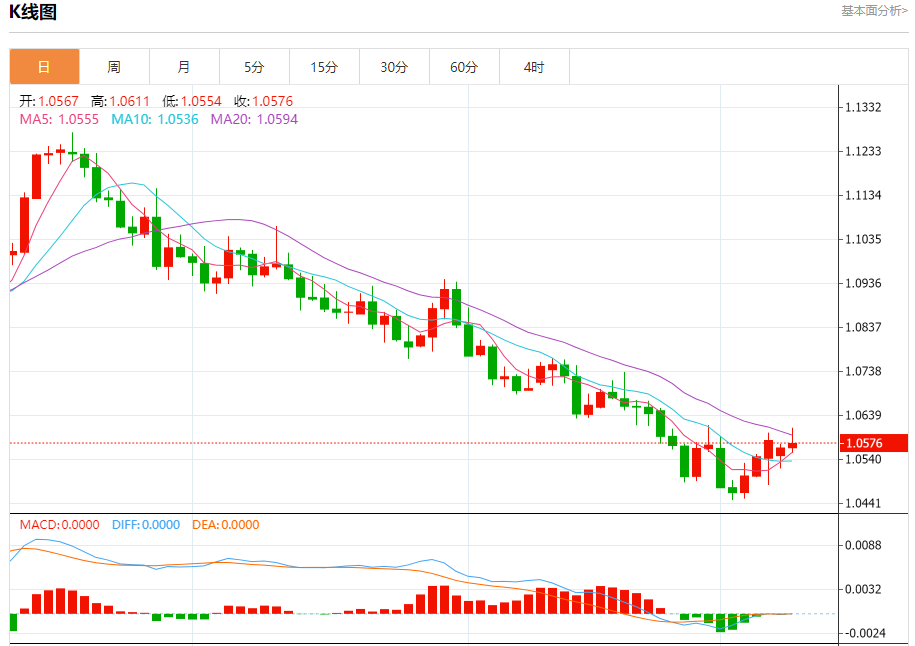 今日周二,截止目前欧元兑美元报1.0578,上涨0.10%。 欧元基本面行情分析 欧洲央行官员发表偏鸽派讲话,欧洲再度加息概率继续回落:欧洲央行官员再度发表再度加息可能性小言论,欧洲央行再度加息可能性小,欧元表现偏弱。欧洲央行副行长金多斯预计,通胀将在未来几个月继续放缓;下半年经