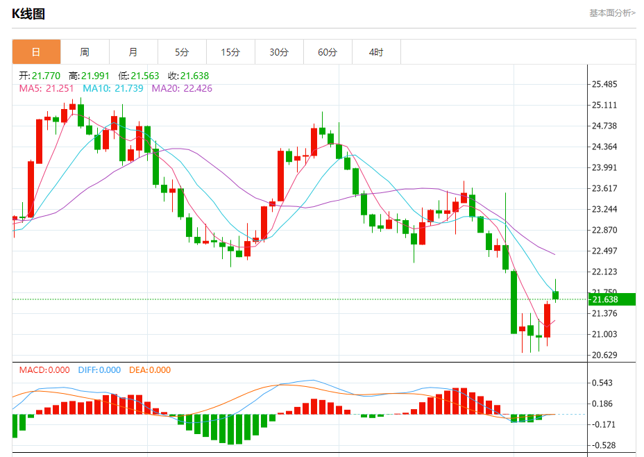 周一盘中,现货白银报21.574,涨幅0.15%。 今日分析:在21.50之上,看涨,目标价位为22.00,然后为22.20。 技术点评:21.50附近形成了一个支撑的底部,将带来走势短期内的稳定。 支撑位:21.5021.3021.10 阻力位:22.4022.2022.00 (亚汇网编辑:
