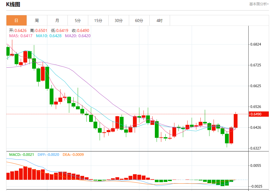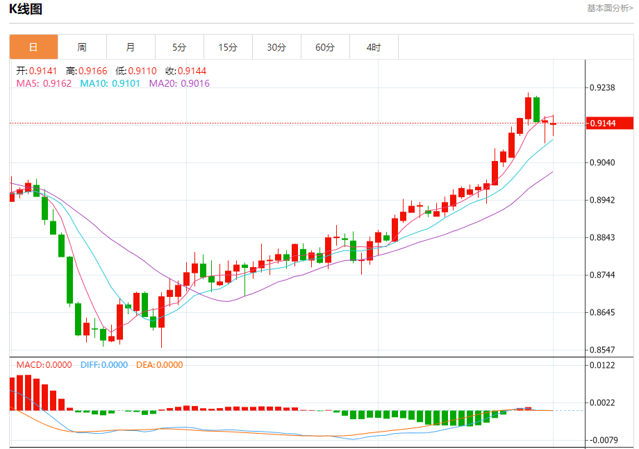 今日周五,澳元兑美元报0.6492,涨幅1.03%;美元兑加元报1.3444,跌幅0.32%;美元兑瑞郎报0.9119,跌幅0.34%。 澳元兑美元汇率分析 技术点评:RI技术指标向上运行。 阻力位:0.65300.65200.6500 支撑位:0.65300.65200.6500 美元兑加元汇率分析