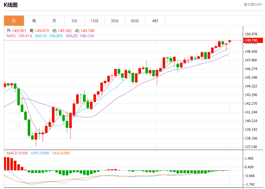 今日周一,截止目前美元兑日元报149.746,上涨0.26%。 日元基本面行情分析 日本央行宣布,将增加周三购债操作的债券年期,在主权债券收益率突然飙升之际,此举凸显该央行遏制收益率攀升速度的决心。 央行的声明指出,购买5-10年期政府债券的规模将在操作时告知。日本央行计划