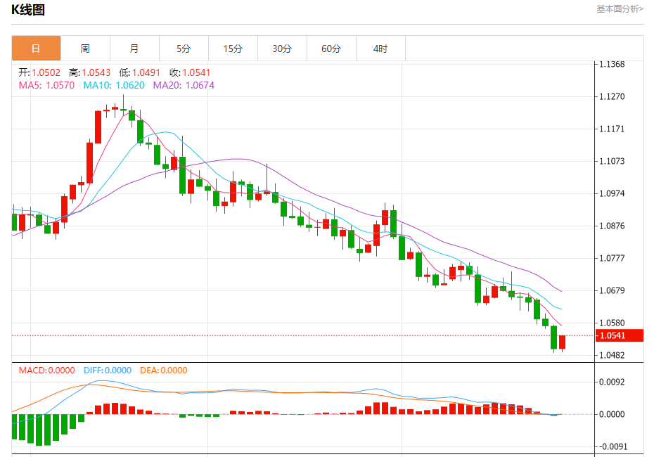 周四晚间,美元指数现报106.317,跌幅0.36%,现对美元兑欧元、英镑、日元主要货币对分析表述如下: 欧元/美元 汇价高见1.0548,低见1.0491。上一交易日,汇价收于1.0502。 基本面:欧盟正面临着严重且迫在眉睫的衰退的困难,这一因素无疑会影响其货币。全球普遍存在的避险情