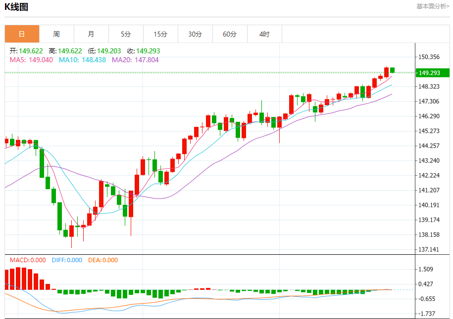 周四纽盘,日元兑美元交投于149.294,跌幅为0.23%。 日元基本面分析 日前,日本央行再次做出维持超宽松货币政策不变的决定,这让市场对本次会议有可能宣布废除负利率政策的猜测落空。有媒体和专家认为,在美国加息恐将长期化背景下,日元有可能继续走软,日本通胀压力或将持续,市场对日本