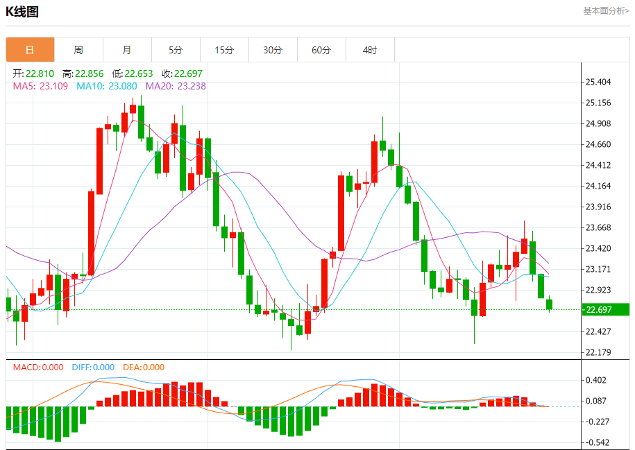 周三盘中,现货白银报22.770,跌幅0.26%。 今日分析:在22.95之下,看跌,目标价位为22.65,然后为22.50。 技术点评:只要22.95阻力位不被突破,向下跌破22.65位置的风险很高。 支撑位:22.6522.5022.35 阻力位:23.2523.1022.95 (亚汇网编辑:冰