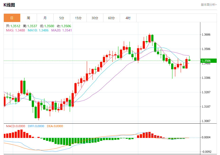 今日周三,澳元兑美元报0.6384,跌幅0.21%;美元兑加元报1.3514,跌幅0.03%;美元兑瑞郎报0.9175,涨幅0.17%。 澳元兑美元汇率分析 技术点评:RI技术指标向下运行。 阻力位:0.64450.64300.6410 支撑位:0.63500.63350.6300 美元兑加元汇率分析