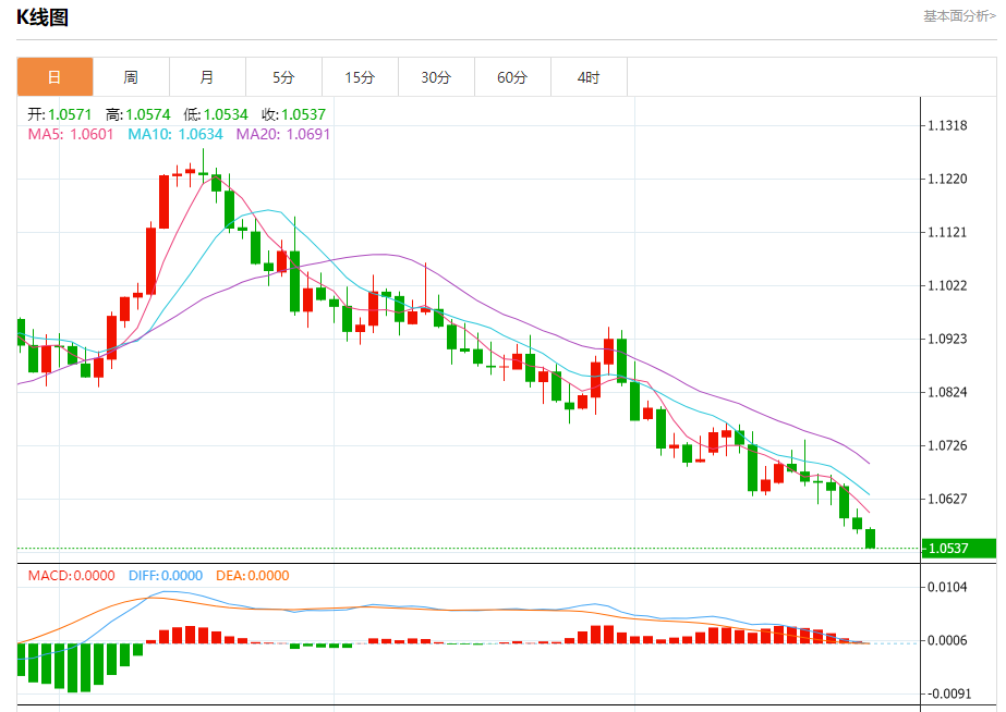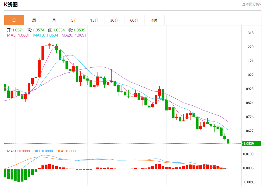 周三晚间,美元指数现报106.448,涨幅0.26%,现对美元兑欧元、英镑、日元主要货币对分析表述如下: 欧元/美元 汇价高见1.0574,低见1.0534。上一交易日,汇价收于1.0572。 基本面:由于负面情绪笼罩全球股市,欧洲股市连续四个交易日下跌。泛欧斯托克600指数大部分板块均下跌