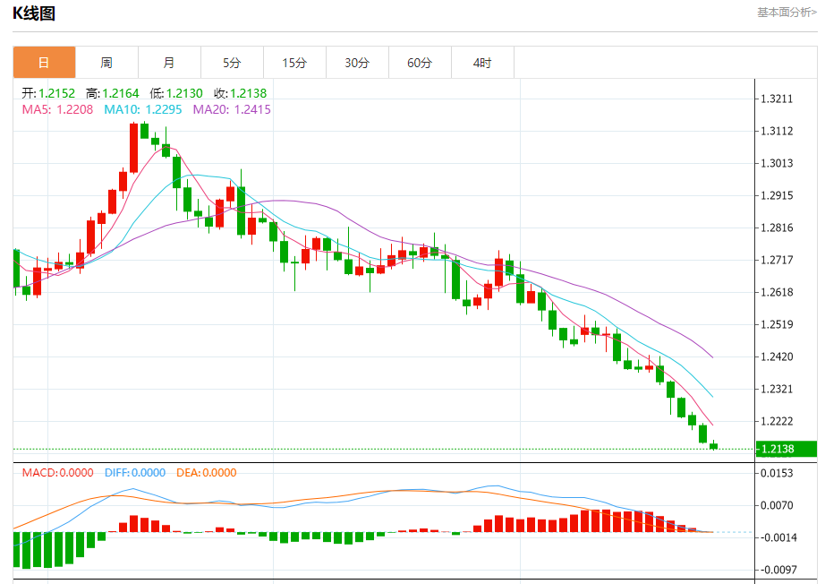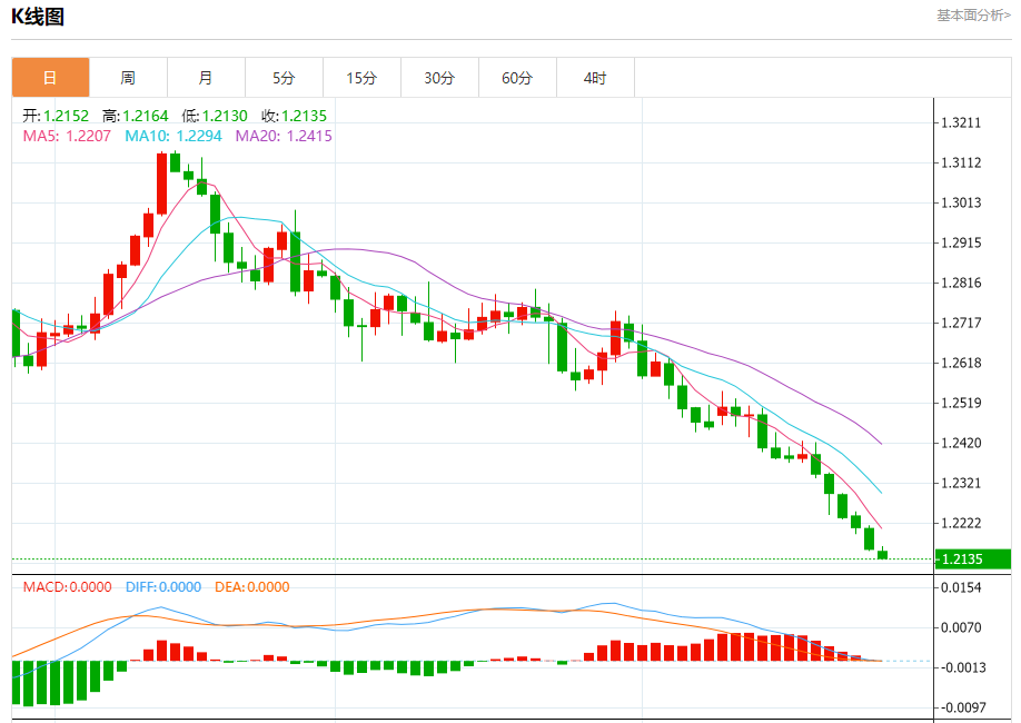 周三盘中,英镑/美元报1.2139,跌幅0.16%。 今日分析:在1.2175之下,看跌,目标价位为1.2130,然后为1.2120。 技术点评:RI技术指标运行趋势复杂,倾向于下跌。 支撑位:1.21301.21201.2100 阻力位:1.22201.22001.2175 (亚汇网编辑:冰凡)