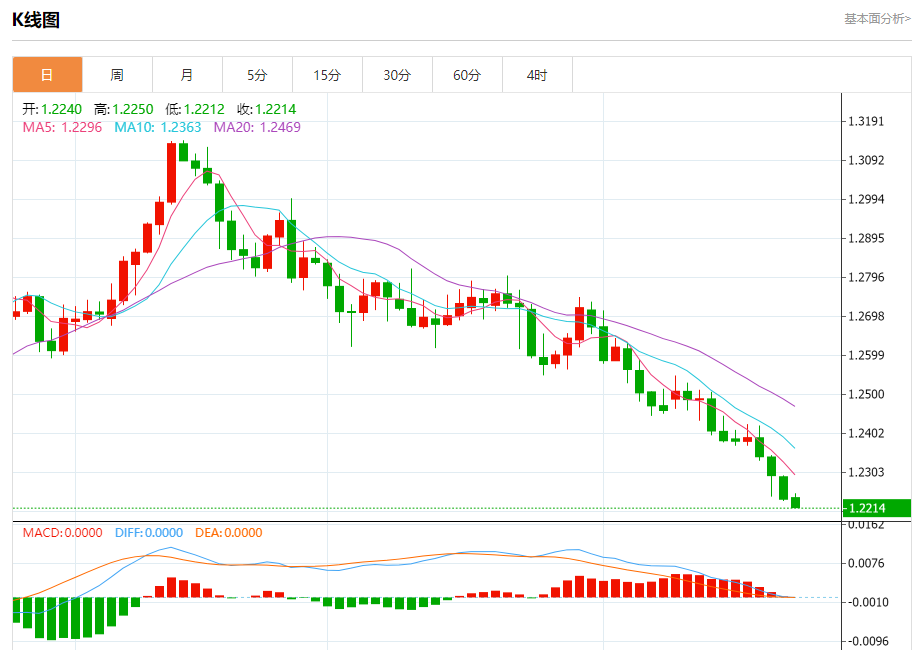 周一盘中,欧元/美元报1.0623,跌幅0.21%。 今日分析:在1.0655之下,看跌,目标价位为1.0615,然后为1.0600。 技术点评:RI技术指标运行趋势复杂,倾向于下跌。 支撑位:1.06151.06001.0585 阻力位:1.06851.06701.0655 (亚汇网编辑:冰凡)