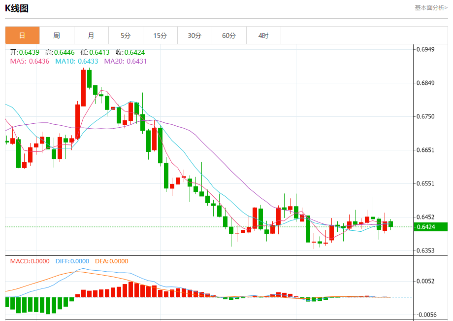 今日周一,澳元兑美元报0.6425,跌幅0.24%;美元兑加元报1.3466,跌幅0.12%;美元兑瑞郎报0.9104,涨幅0.37%。 澳元兑美元汇率分析 技术点评:RI技术指标缺乏上升动能 阻力位:0.64800.64650.6450 支撑位:0.64100.63950.6380 美元兑加元汇率分析