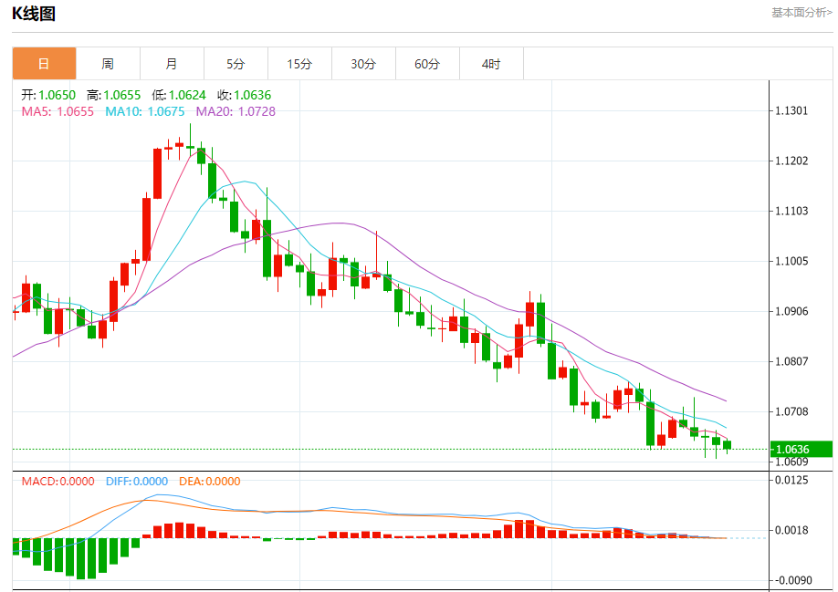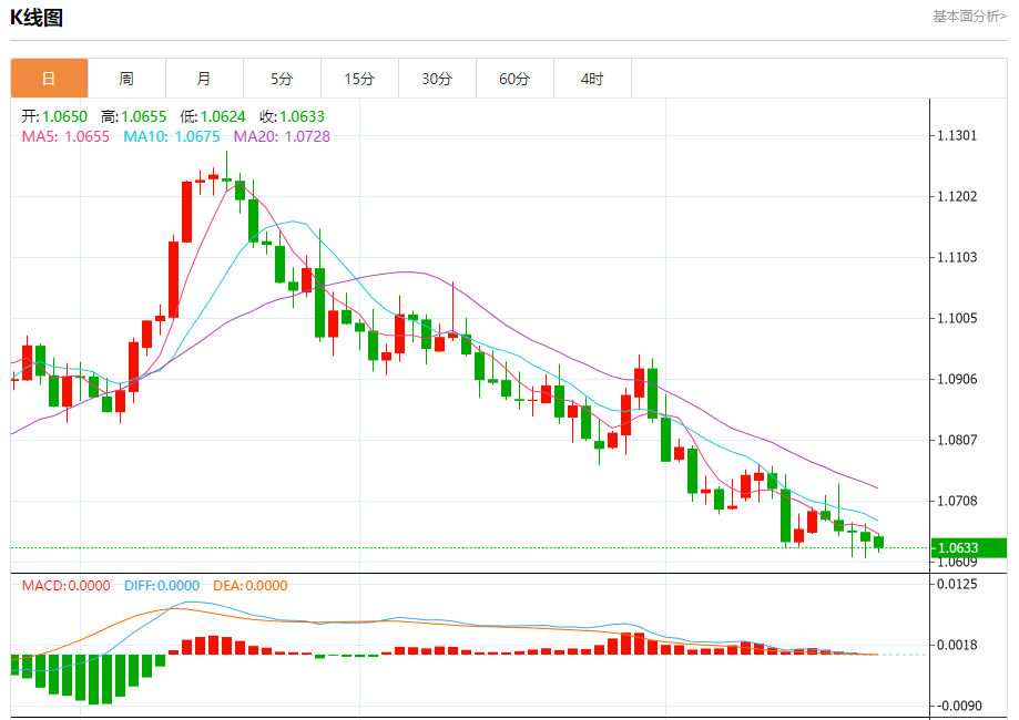 周一晚间,美元指数现报105.657,涨幅0.04%,现对美元兑欧元、英镑、日元主要货币对分析表述如下: 欧元/美元 汇价高见1.0655,低见1.0624。上一交易日,汇价收于1.0644。 基本面:德国商业银行表示,在欧元区I显示出更清晰的迹象表明欧元区即将陷入衰退之后,欧洲央行再次